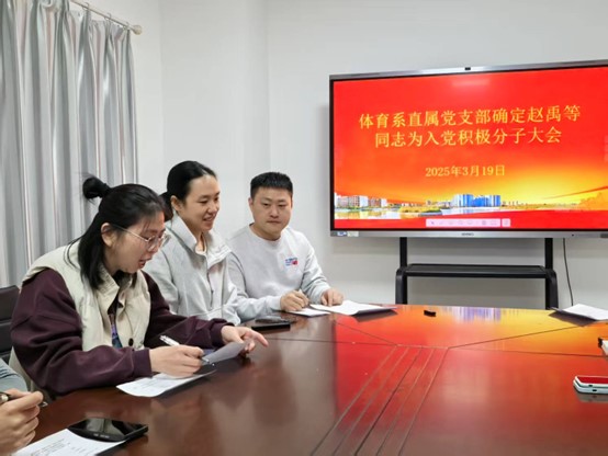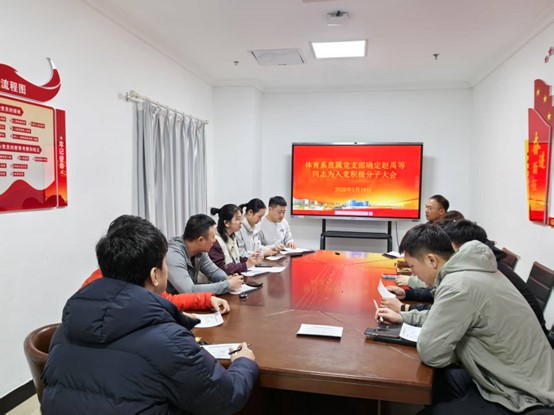 2025年3月19日,体育系直属党支部于国交304会议室召开确立积极分子大会及主题党日活动,审议并通过无记名投票方式确立赵禹等同志列为入党积极分子。会议由支部副书记于雅同志主持,组织委员王珣同志全程进行记录,全体党员及部分群众代表参会。