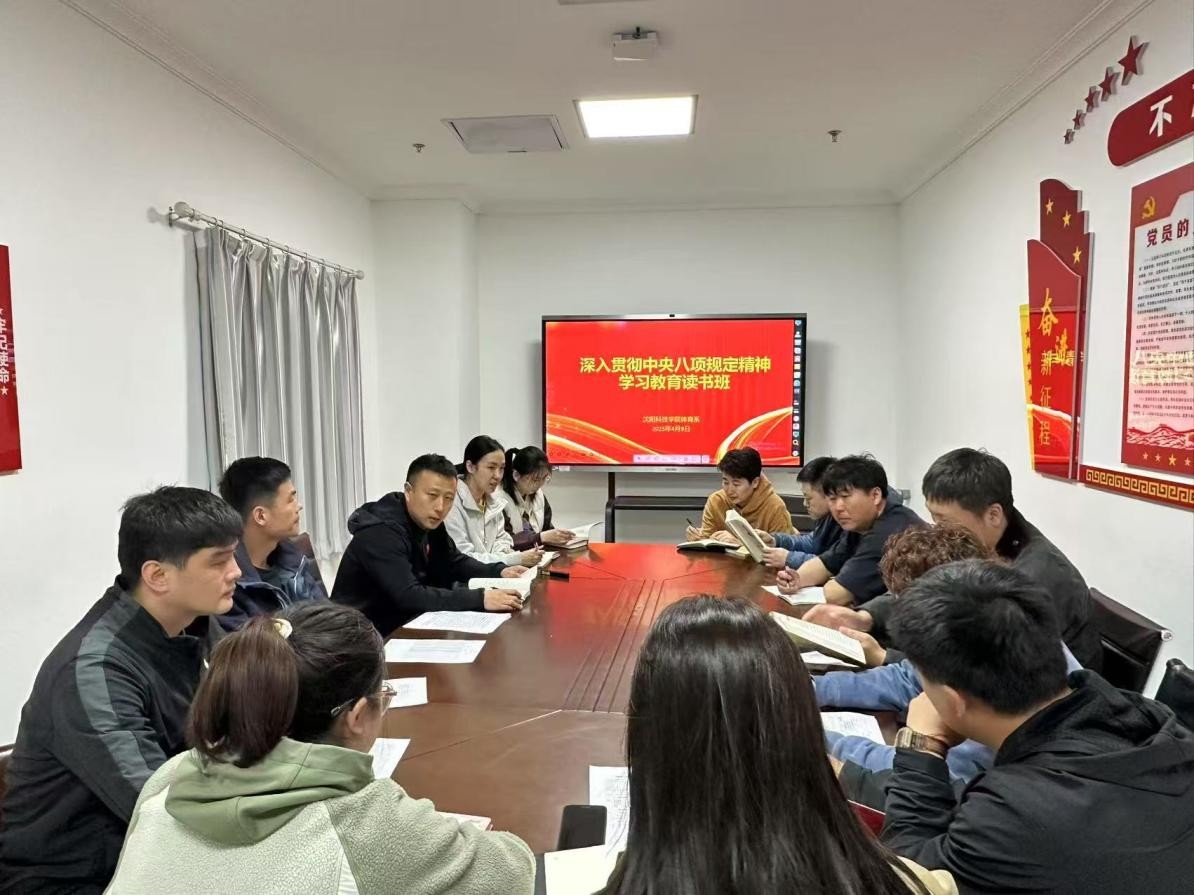 4月9日,体育系直属党支部举办深入贯彻中央八项规定精神学习教育读书班,为体育系高质量发展筑牢思想根基。系员工工作负责人仇晓涛同志主持学习,副书记于雅、系副主任李思莹及全体教工党员参加学习。